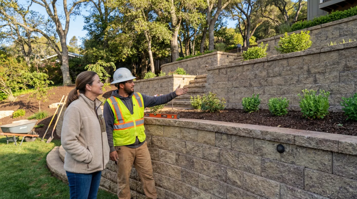 Working in the Bay Area requires more than basic construction. Many properties sit on steep hillsides, expansive clay soils, and areas with heavy winter runoff. Without proper excavation, drainage, and reinforcement, retaining walls can shift or fail over time.